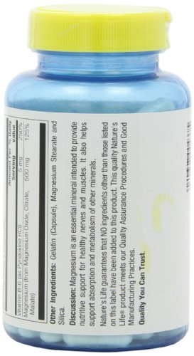-. Binding : Health and Beauty -. Brand : Nature's Life -. Feature : Essential for strong bones / Single minerals / Contains 50 capsules -. Label : NATURE'S LIFE -. Manufacturer : NATURE'S LIFE -. PackageQuantity : 1 -. ProductGroup : Health and Beauty -. ProductTypeName : HEALTH_PERSONAL_CARE -. Publisher : NATURE'S LIFE -. Studio : NATURE'S LIFE -. Title : Magnesium (500mg)