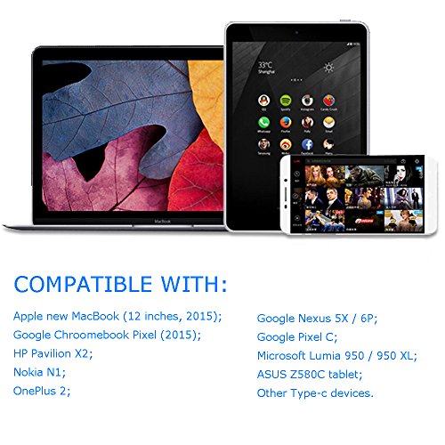 Widely Compatibility: Working well with the new USB C devices such as the Apple New Macbook 12 Inch (2015), OnePlus Two, Google Nexus 5X, Nexus 6P, Pixel C, New Nokia N1 tablet, Lumia 950, Lumia 950XL, ChromeBook Google Pixel, Asus Zen AiO, Lenovo Zuk Z1, HP Pavilion X2, ASUS ZenPad S 8.0 and other devices with USB C connector.
