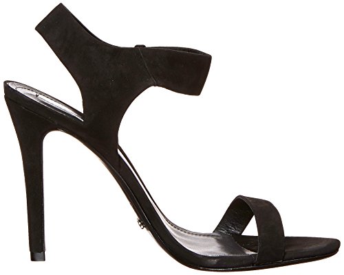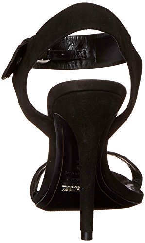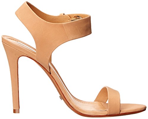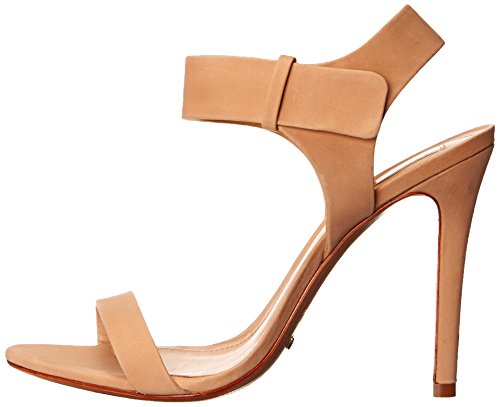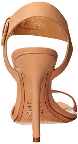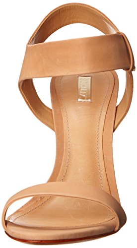 Leather dress sandal featuring covered heel and wrap-around strap at ankle with hidden buckle closure