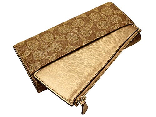 Wrapped in Coach's signature coated canvas, this slim envelope style wallet has a snap flap closure accented with Coach's logo. The interior features (12) credit card slots, bill compartments and a zippered coin compartment. The back features an open slip pocket along with a removable zippered pouch. It measures approximately 8" (L) x 4" (H) x 1.5" (W).Feature