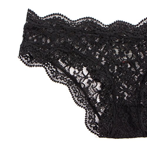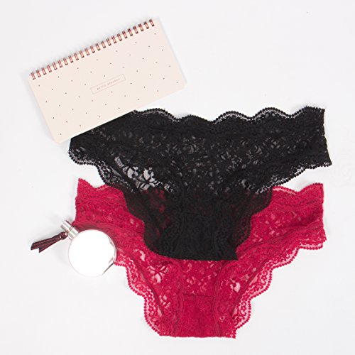 Damenslip aus zarter, elastischer Spitze mit Wellenkanten - Lingerie im vorteilhaften 3er-Pack - Unterwasche in Schwarz oder Rot erhaltlich