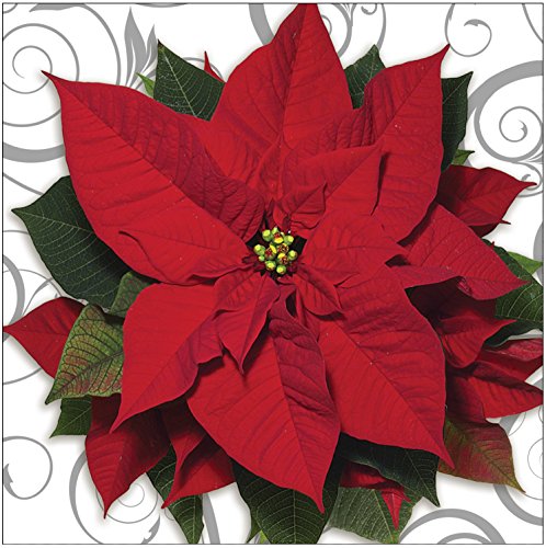 Creative Converting 3-Ply Poinsettia Swirls Beverage Napkins, Red/Silver/White