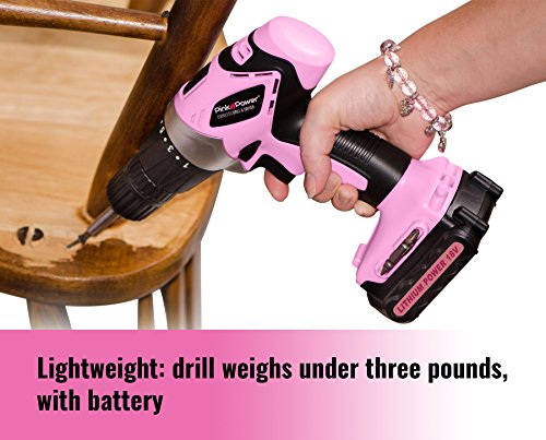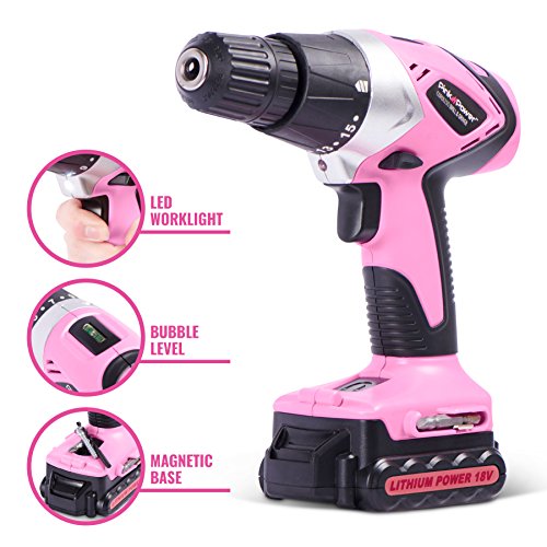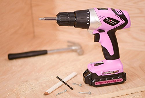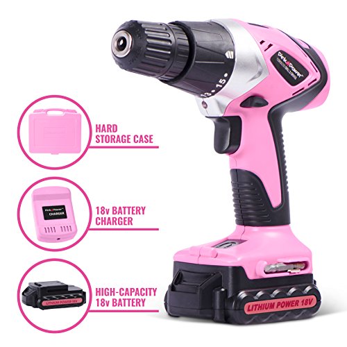 Pink Power PP181LI 18 Volt Lithium-Ion Cordless Electric Drill Driver Kit for Women- Tool Case, Drill Set, Battery & Charger
