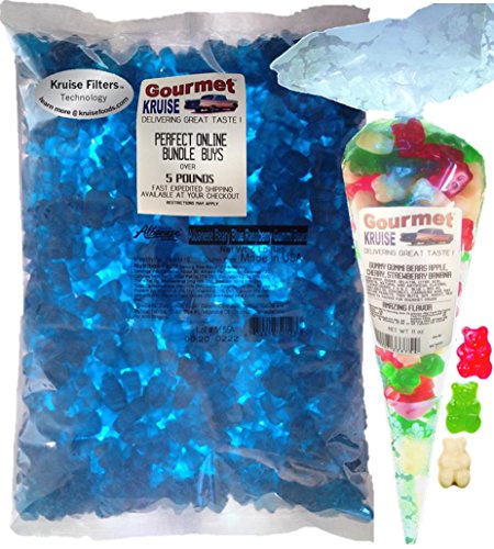 -. Title : Blue Gummi Gummy Bears Raspberry Albanese - Bulk Candy 5lb Bag With Green Apple Red Cherry And White Strawberry Banana Gourmet Kruise Signature Gift Bag 11 OZ (NET WT 5 LBS.11OZ) 2 Item Bundle