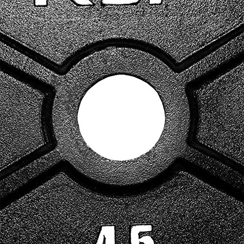 - "X" centered in between grip holes on 45, 35, and 25 lb plates.