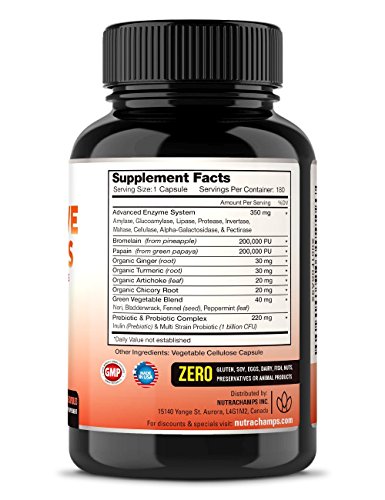 -. Feature : ★ THE COMPLETE DIGESTIVE SOLUTION - As one of the most complete digestive enzyme formulas on the market, NutraChamps Digestive Enzymes is formulated with a diverse range of over 21 different nutrients clinically shown to help you digest at your best. With this powerful plant-based blend, the days of stomach discomfort will be left behind for good. / ★ IMPROVE YOUR DIGESTION NOW - Whether it's daily digestive health or additional support to address digestive discomfort, NutraChamps Digestive Enzymes is here to help keep your digestive system performing at its peak. As these key enzymes ensure your digestion is running smoothly and comfortably, you'll be able to tackle even the most difficult digestion of proteins, fats and complex carbohydrates found in today's processed foods with ease. / ★ RE-ENERGIZE WITH BETTER DIGESTION - When your digestive system works efficiently, you waste less energy processing food. This allows you to have more energy to do the things you love. Greater nutrient absorption supplies the body with increased energy availability and promotes optimal function through a wide range of health areas. / ★ GOOD BYE GAS & BLOATING - Put an end to excessive bloating, gas, and stomach discomfort once and for all with NutraChamps Digestive Enzymes. With over 10 vital enzymes working in collaboration, this natural breakthrough solution can reduce all types of digestive debility. Say hello to easy digestion and feeling your best after a good meal. / ★ ADDRESS ALL FOOD TYPES - With enzymes specifically selected to help digest all five major food groups - including dairy, fats, protein, carbs, and fiber - this premium formula is a one-stop-shop for optimal digestive health. Contains Amylase, Glucoamylase, Lipase, Protease, Cellulase, Pectinase, Maltase, Invertase, Bromelain, Papain (from papaya), Organic Turmeric, Ginger, Chicory Root, Artichoke, Green Vegetable Blend & More!