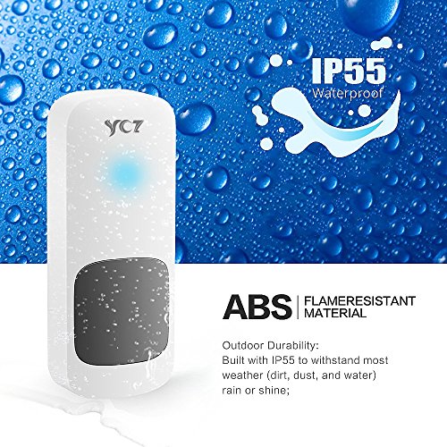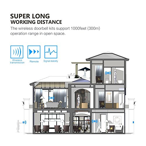 -. Brand : proelesinc -. Feature : 300 meters transmission range in the oper area. The actual wireless transmission range depends on your using environment. -. Label : proelesinc -. Manufacturer : proelesinc -. ProductGroup : Home Improvement -. ProductTypeName : HOME_LIGHTING_ACCESSORY -. Publisher : proelesinc -. Studio : proelesinc -. Title : YCZ Wireless doorbell Waterproof Doorbell,Operating at over 500-feet Range with Over 50 Chimes,No Batteries Required for Receiver, Push Button with LED Indicator