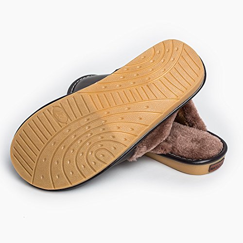 -. Binding : Apparel -. Brand : Maylian -. Department : mens -. Feature : Outer Material:pu leather / Warm furry fur lined,with soft rubber sole / Winter warm cozy thick fluffy shoes for men,Low price and high quality / Low flat heel, it is no pressure on your foot; slip on closure, which is convenient to put on and take off / They are comfortable and light to wear at your house -. Model : EE13M -. ProductGroup : Shoes -. ProductTypeName : SHOES -. Title : Warm Comfy Fuzzy Lined Home Leather Slippers for Men Indoor Shoes