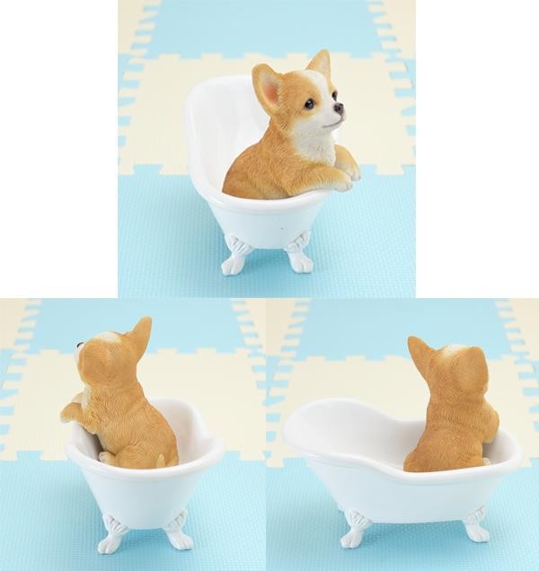バスタブにちょこんと入った、子犬のチワワのオブジェです。バスタブの中で思い思いのポーズでくつろぐ姿に癒されます。バスタブ部分は、小物入れやフラワーベースとしてもご使用いただけます♪きれいな仕上げで、まるで生きているかのような、愛らしい仕草や表情が特徴です。 |