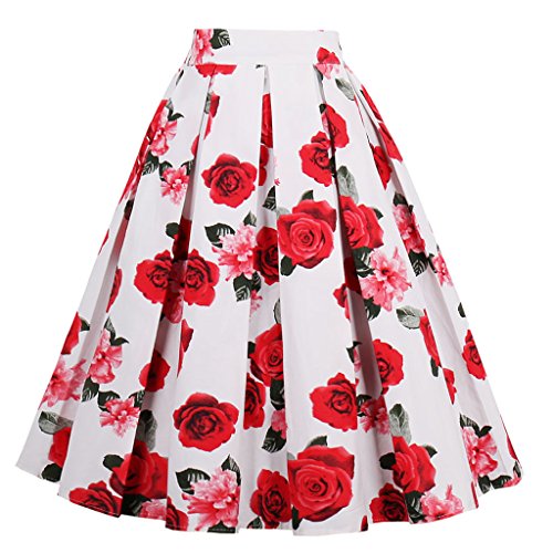 -. Title : Dressever Women's Vintage A-line P.R.Inted Pleated Flared Midi Skirts