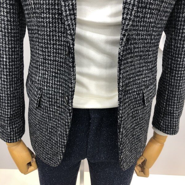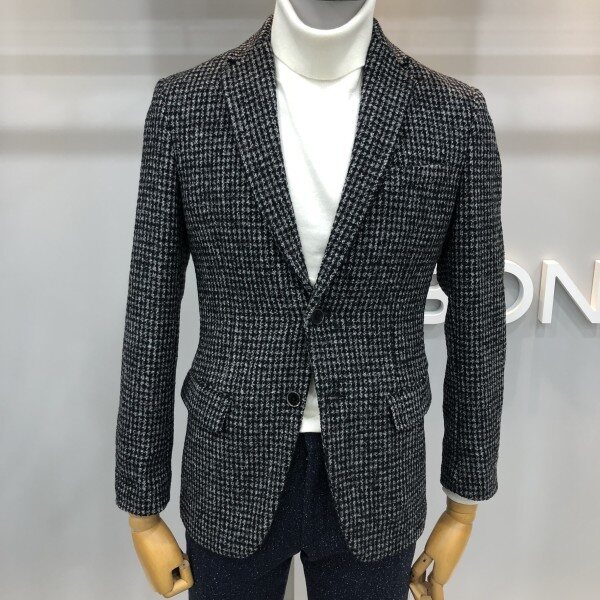 본 F/W 가을 겨울 하운드 투스 체크 블랙 자켓 입니다 이 상품은 청바지 나 슬렉스에매치하여 멋스러운 연출 할수 있으며이너를 니트 혹은 폴라티에 매치하여클래식 비지니스 연출을 가능할수 있는 아이템입니다.