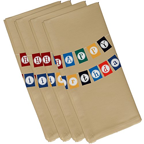 E by design Happy Birthday, Word Print Napkin, 19 x 19", Taupe (Beige)