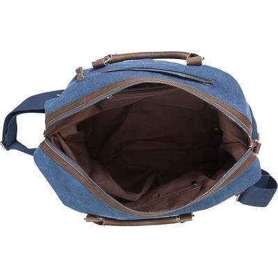 Studio : JDS Publisher : JDS Binding : Misc. Product Description Our personalized canvas duffel bag has timeless style and is perfect for the 2-3 day trip! The compact size makes it an ideal carry-on bag that will fit under your seat. Remove the strap and grab and go with the two 14" easy carry handles or use the adjustable shoulder strap with its body hugging design. Personalize this bag with 3 initials in the order of F,M,L. Item Specifications: Large main compartment has double zippers 100% polyester lining Strap adjusts from 36 to 60 inches for the perfect fit. Personalize with 3 initials in the order of F, M, L Numerous zippered pockets will hold your techie and small personal items. The 4 bottom brass feet protect the underside from getting dirty. Product Size: 18" (w) x 11 1/2" (h) x 9" (d). Material: 16 oz. washed blue cotton canvas and split leather. 0