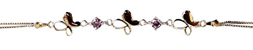 Silver Color Copper Anklet with Butterflies. Simulated Amethyst Cubic Zirconia (9 Inches)