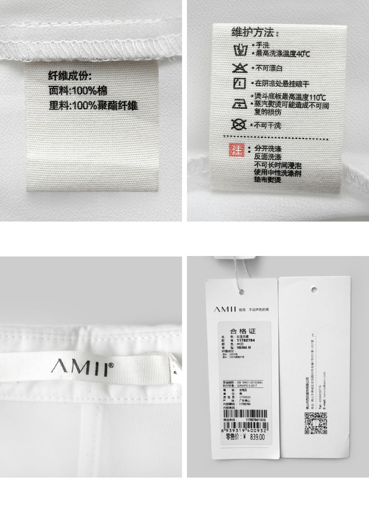 | 洗涤标准: | 40℃以下手洗110℃以下垫布熨烫不可漂白不可浸泡悬挂晾干不可干洗 |