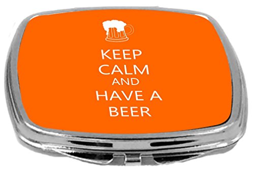 Rikki Knight Compact Mirror, Keep Calm and Have a Beer Orange