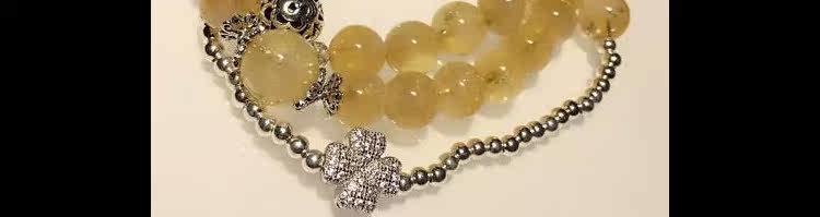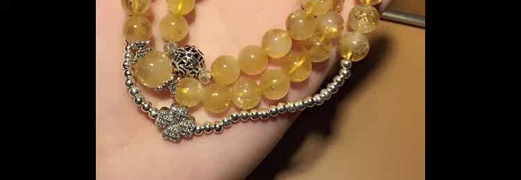 天然巴西黄水晶招财转运手链女多层多圈3圈925银四叶草手串送女友