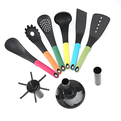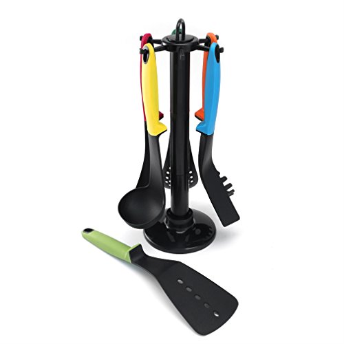 Homgrace 6 Pieces Kitchen Utensil Set, Nylon and Rubber Non-slip Handle Heat-resistant with Rotatable Kitchen Rack