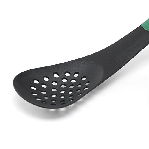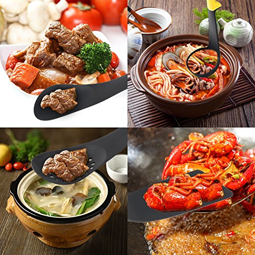 【Perfect Design】This Kitchen Utensil set Includes 1 Flexible Turner x 1 Slotted Spoon x 1 Slotted Turner x 1 Ladle x 1 Spaghetti Server x 1 Solid Spoon and Rotating Carousel to hold all other utensils. It's Easy to Clean And Dishwasher Safe.