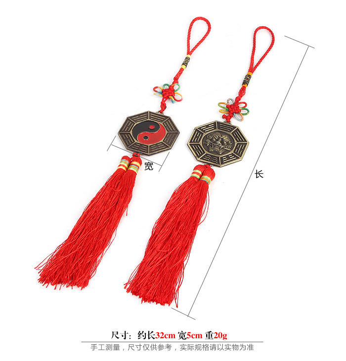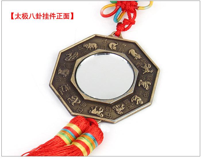 Also known as Tai Chi Bagua Bagua Mirror Mirror : The country has been known as feng shui mascot. According to legend, in ancient times dating back seven thousand years ago , Fuxi watching for images before making the gossip . . " To pass the gods of Germany, to the class of all things love" "Easy copulative Biography" , said: "Easy Tai Chi is two appearances , appearances of Health four images, four images and raw gossip ," Tai Chi is one , that is . Road , is totally strength of the elephant, is the root cause of heaven and earth . Yang Tai Chi movement was born , still born female , yin and yang are two appearances . The two appearances gave birth to a yin and yang as four images ( Shaoyang, old Yang , Shao , old yin ) . Four images is Yin and change in nature , but also on behalf of seasons seasons . The four images each born again yin and yang , it generates a gossip . Gossip to represent heaven, earth, wind , thunder, water, fire , mountains, Ze , and that healthy , smooth , moving , people, depression , Laguna , just say so on. The mirror is awe Xiemei ancient auspicious objects . Legend " will be the Queen Mother in Dili wangwu , cast mirror twelve , with the use of the moon , this lens is the beginning ." Ancient bronze mirror to use , it has become popular in the Warring States period . Tai Chi Bagua map to the center within the same circle as the boundary , draw the yin and yang represent two things equal relationship . Female fish with black , male fish with white , which is the representation of the day and night . Yang fish head with a cloudy eye , female fish head with a positive eye , which means that things are in mutual transformation , mutual penetration , yin in yang , yang there is yin , yin and yang, consistency, allelopathy , that modern philosophy and contradictory unity of opposites notation.
