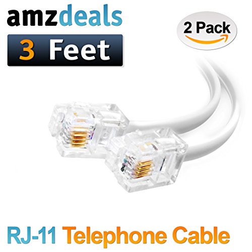 (2 Pack) 3 Feet White Short Telephone Cable Rj11 Male to Male 36 inch Phone Line Cord