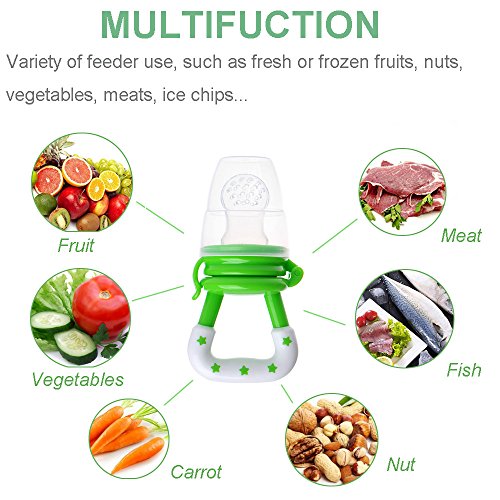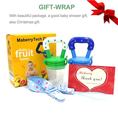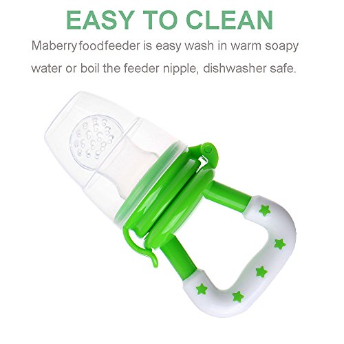 -. Feature : ★ SAFETY MATERIAL - 100% food grade silicone nipple fresh fruit feeder, BPA free, lead free, petroleum free, latex free and fhthalates free. / ★ SAFETY DESIGN - Baby food feeder nipple holes don't allow chunks of food through which could induce choking. / ★ EASY TO CLEAN - Maberry food sucker is easy wash in warm soapy water or boil the feeder nipple, dishwasher safe.Is more stain resistant than other mesh bag products. / ★ MULTIFUCTION - Easy grab teether toy for baby. Not only a feeder but also a Pacifier teether toy.Variety of feeder use, such as fresh or frozen fruits, vegetables, meats, ice chips... / ★ TEETHING BABY GIFT - By chewing on the soft nipple can relieves your baby's aching itchy gums. Allows your baby to eat a variety of foods, they can more fun and more focus on dining. A wonderful gift for your own and your friends' baby.