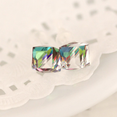 Korean fashion jewelry earrings cute little candy crystal cube stone earrings hypoallergenic plastic ear acupuncture