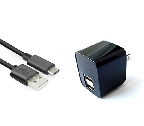 Value Pack - 2.4A Dual USB Wall Charger and USB Type C (USB-C) Charging Sync Cable