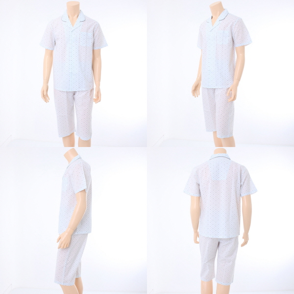 작은 별나염이 프린트된 면 100% 리플 소재로 만들어진 파자마 입니다.