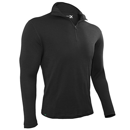 WOOLX MEN'S MERINO WOOL QUARTER ZIP TOP - EXPLORER 1/4 ZIP, BLACK, LARGE (42-44)