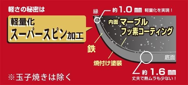 マーブルフッ素・鉄製フライパンのシリーズです。スーパースピン加工を施し軽量化!(※玉子焼きは除く) |