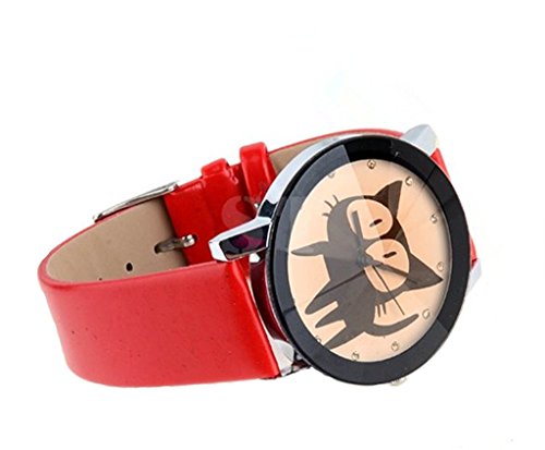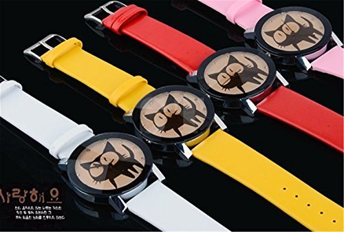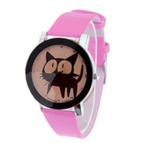 PromiseU Fashion Casual Cute Cartoon Kitty PU Leather Clock Quartz Wrist Watches