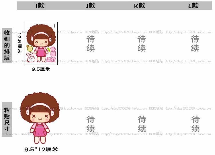 Sizes, "you receive the goods and typesetting" size and "collage after size reference" two