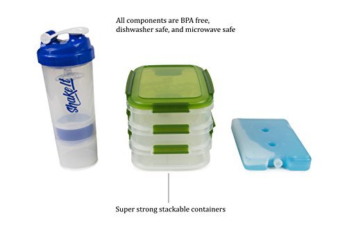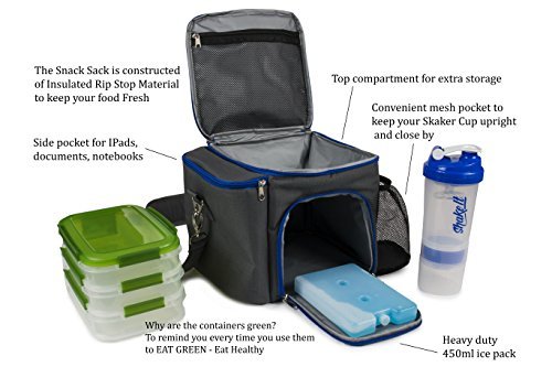Only High Quality Materials - Long term diet control requires a lunch bag that will last. Our bag is made of Washable Rip Stop material lined with super thick foam insulation, the containers are practically unbreakable yet BPA free, the Shaker Cup too is crazy tough with a built in agitator and interlocking containers for powders and vitamins, and the 450ml (largest you’ll find) Ice Pack will last years and years.