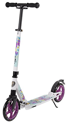 -. Feature : Lightweight premium Scooter made of high quality Aluminium / Huge carrying capacity up to 100 KG (220 lbs). This long lasting scooter will grow with your child. Great for adults too! / Lower foot board prevents leg fatigue / Fender/spray protection on both wheels keeps the rider clean and dry. / Giant 205 mm wheels ensure a smoother ride