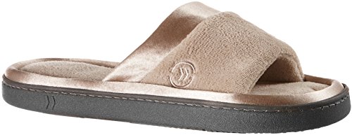 -. Title : Isotoner Women's Microterry Satin Trim Wider Width Slide Slippers