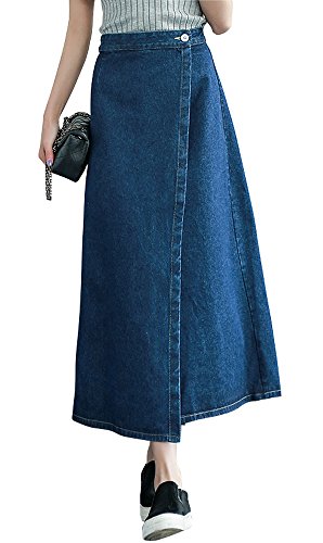-. Title : ELPIS レディース 定番 レトロ シンプル ボリューム Aライン デニム ロング ラップ スカート 巻きスカート マキシ丈 ハイウエスト