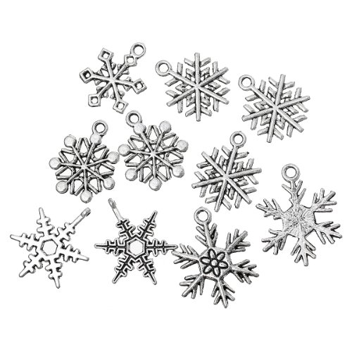 Housweety 50 Mixed Silver Tone Christmas Snowflake Charm Pendants