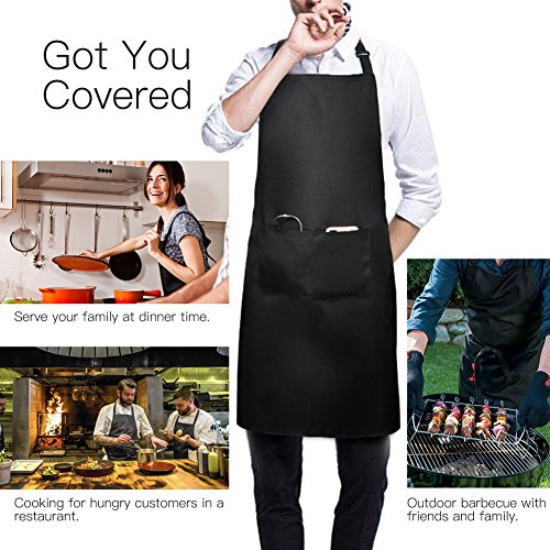 Avorast 2 Pack Black Aprons Water Drop Resistant Chef Kitchen Cooking Bib Apron