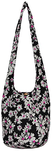-. Brand : All Best Thing -. Department : womens -. Feature : HANDMADE BAG: Handmade by experience craftsmen one by one. / ATTRACTIVEHOBO BAG: Hobo bag with Daisy Flower Pattern and Made by 100% Cotton / PERFECT SIZE: Dimension is Total length of shoulder strap 38", Bag size Height 14", Width 17" / SAFETY CLOSED: Button and zipper on top closure. Small pocket inside. / EYE CATCHER: Eye catcher for going school or shopping. -. ProductGroup : Shoes -. ProductTypeName : HANDBAG -. Title : Black Flower Bohemian Hippie Hipster Hobo Boho Crossbody Shoulder Bag Daisy