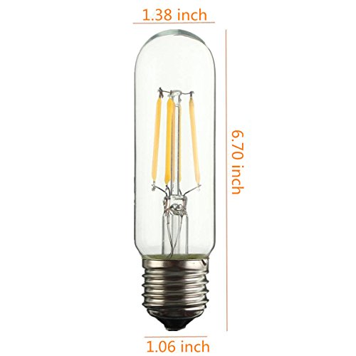 KINGSO 2 Pack E27/E26 T10 128 4W Cob Led Vintage Light Retro Edison Style Screw Technology Tubular Nostalgic Filament Dimmable Pure White 6000K-6500K 400LM AC 110V