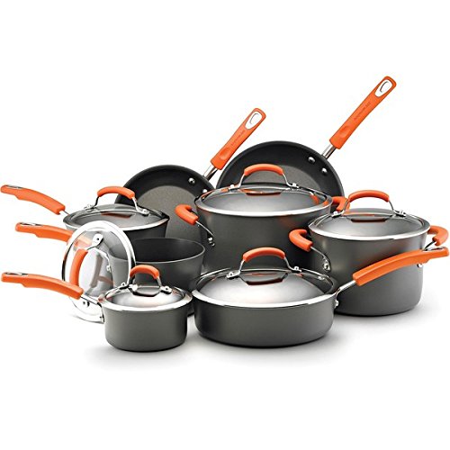 -. Title : Rachael Ray Hard-anodized Nonstick 14-piece Grey with Orange Handles Cookware Set