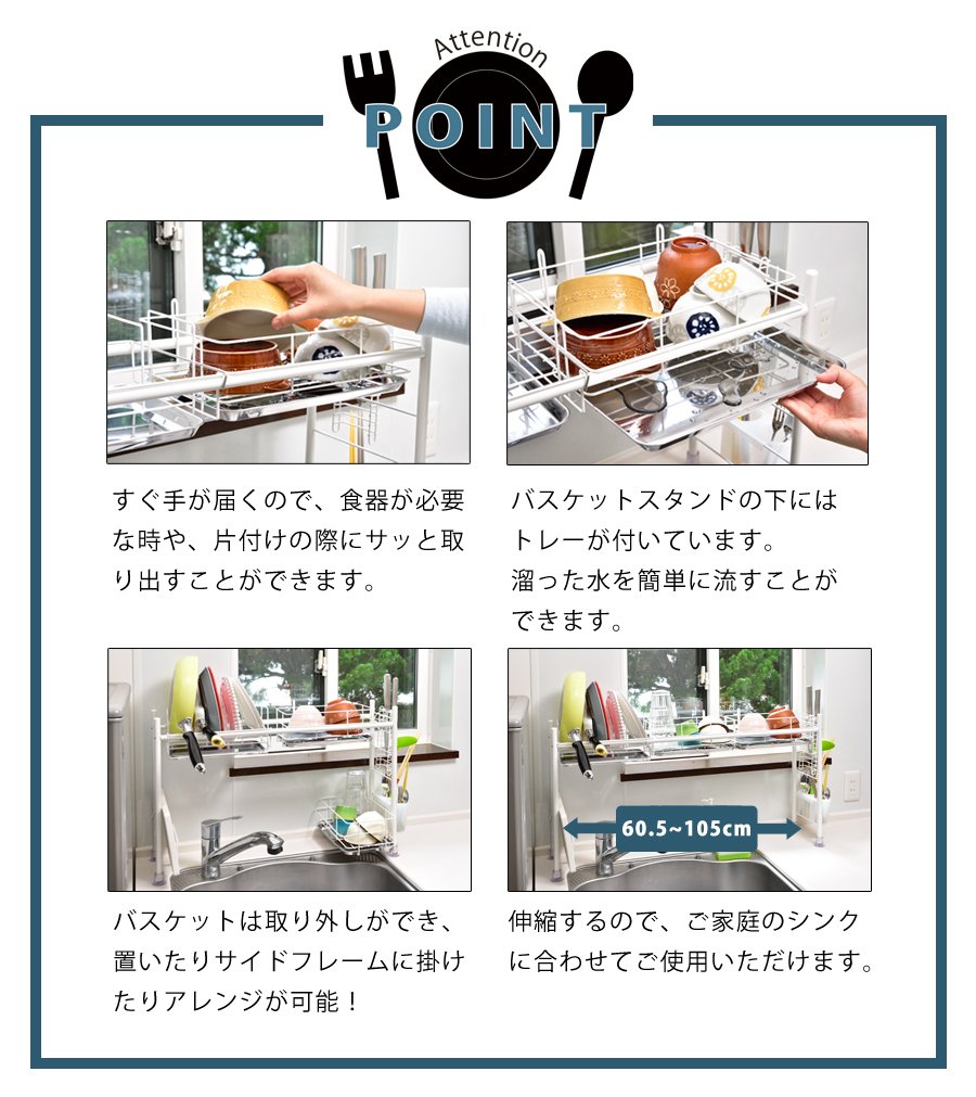 ● Install a draining basket that takes a place to a deadspace on the sink, and you can effectively utilize the kitchen space widely.