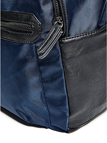 Product Description Nylon backpack with faux-leather trim. Exterior pouch pockets plus zip pocket at front. Lined interior features mesh pouch pocket. Adjustable shoulder straps. 0