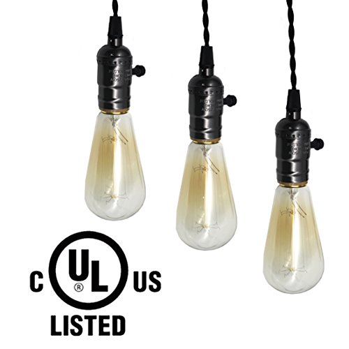 E26/ E27 Solid Industrial Triple Light Sockets, Sopoby Vintage Edison Hanging Textile Pendant Light Cord Kit with Plug