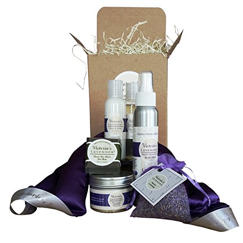 GIFT SET: Neck Wrap, Lavender Lotion and Body wash in travel size, Lavender Body Mist, Dead Sea Mud facial soap, Soy candle and Lavender sachet. Handmade in the USA.