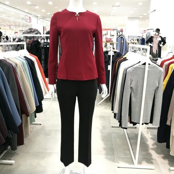기본정장 슬랙스입니다. 핏이 밑으로 내려가면서 조금씩 좁아지는 스타일로서 코디하기 쉬우며 다리가 길어보이는 장점이 있어요.