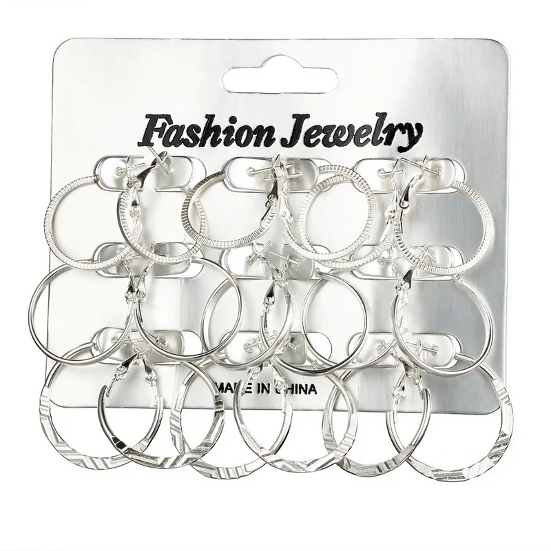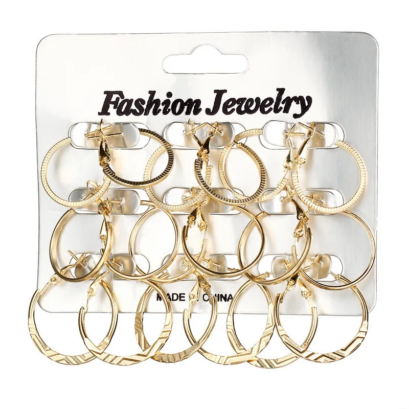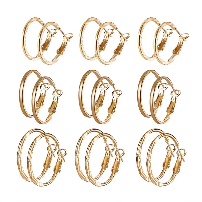 Model Number:9 Pairs/sets Gold Color Smooth Earrings For Women