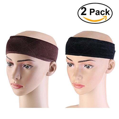 OULII Velvet Wig Grip Band Comfort Head Hair Band Adjustable Hair Fasterner Gifts for Mothers, pack of 2 Brown and Black