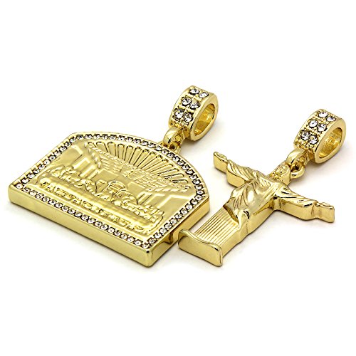 -. Feature : Chain:14K Gold Plated STAINLESS STEEL BUILD - The high quality stainless steel material is highly resistant to rust, corrosion and discoloration / Gold Tone Ice out Last Supper, Cross Pendant 24",30" Stainless STeel Cuban Chain 2 Necklace Set / Last supper: 3.2Cm x 3.7Cm, 14k Gold Plated Over Alloy Metal / Cross: 3.2Cm x 3.2Cm, 14k Gold Plated Over Alloy Metal / Imitation Gold Tone Plated "Fashion Costume Jewelry" This is NOT Real Gold